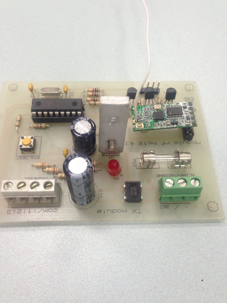 Questo semplice circuito è un trasmettitore RF a 433 Mhz principalmente costruito per trasmettere un allarme da una postazione all’altra , costruito per un’esigenza di , dato un contatto della macchina refrigerante , trasmettere questo contatto di allarme ad un altra postazione dotata di suoneria di allarme.