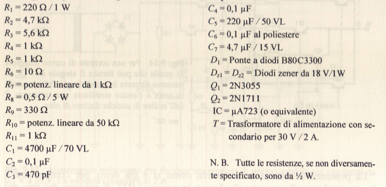 Alimentatore stabilizzato con Vo variabile da 0 V a 30 V