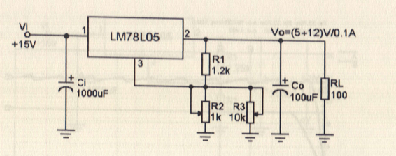 La tensione Vo di uscita di un regolatore a tre terminali può essere resa variabile semplicemente aggiungendo alla configurazione di base due resistenze.