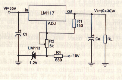 Stabilizzatore di tensione con Vo variabile da 0 V a 30 V
